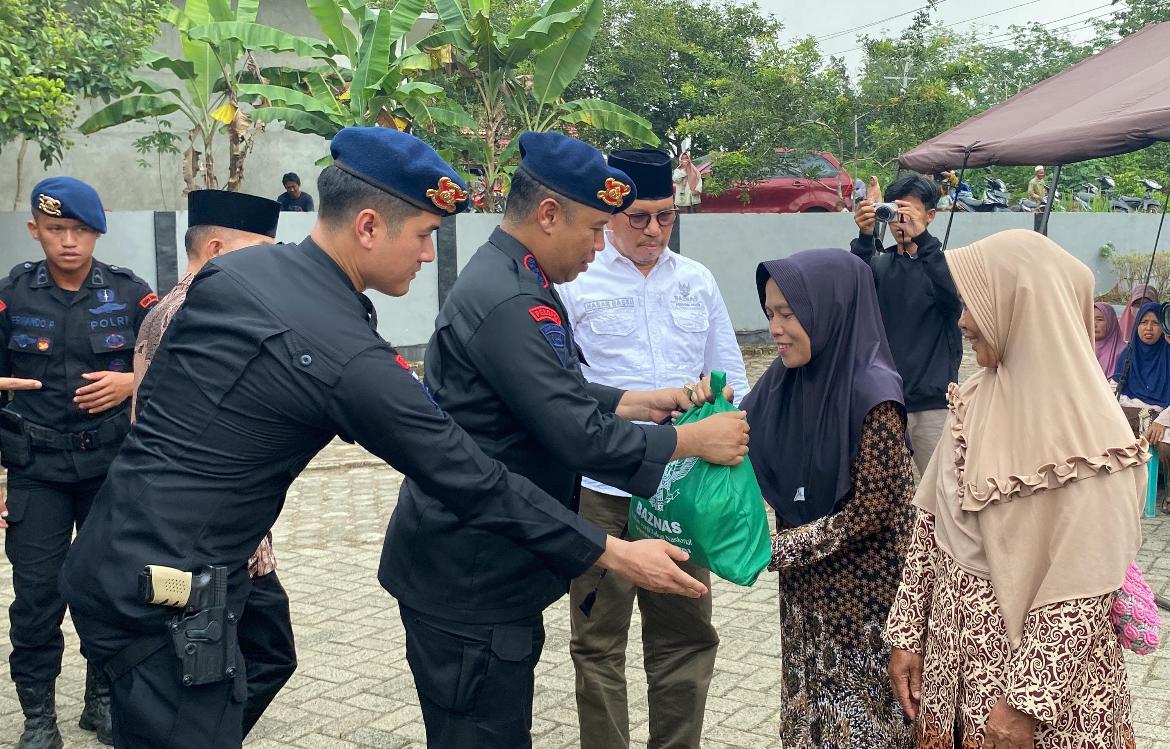 Satuan Brigade Mobil (Satbrimob) Polda Jambi bersama Baznas membagikan ratusan paket sembako kepada masyarakat, Jumat 1 Oktober 2024 kemarin.