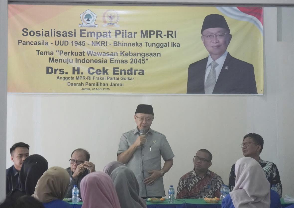 Anggota DPR RI dari Fraksi Golkar daerah pemilihan Jambi, Drs. H. Cek Endra, melaksanakan kegiatan Sosialisasi Empat Pilar MPR RI di Kampus STIE Jambi, Selasa (22/4/2025).