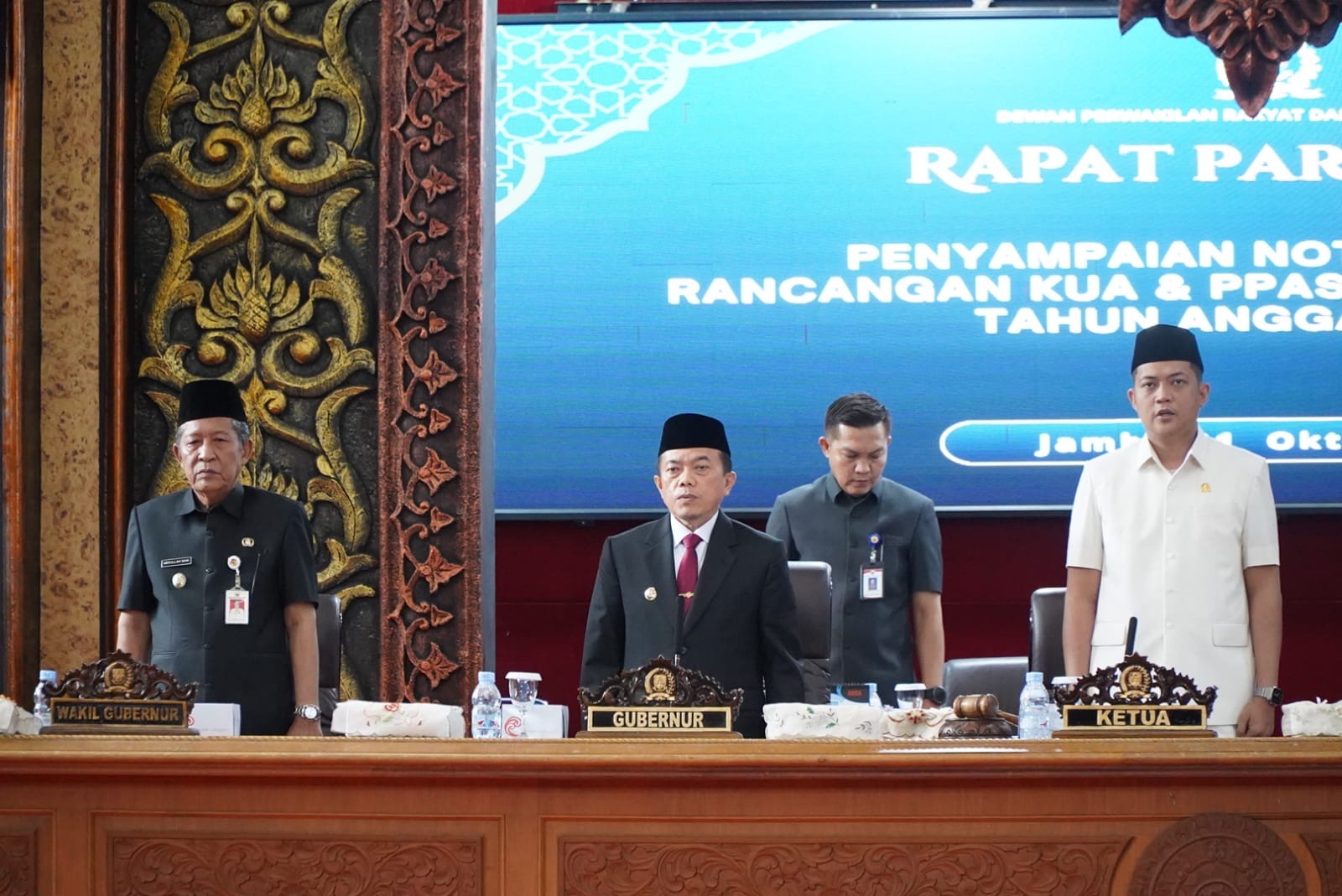Dalam sambutannya, Gubernur Al Haris menyampaikan bahwa Rancangan KUA-PPAS 2026 memuat kerangka ekonomi makro, asumsi dasar penyusunan APBD, kebijakan pendapatan, kebijakan belanja, kebijakan pembiayaan, serta strategi pencapaiannya, yang selanjutnya akan dibahas bersama DPRD sebelum ditetapkan menjadi RAPBD 2026.