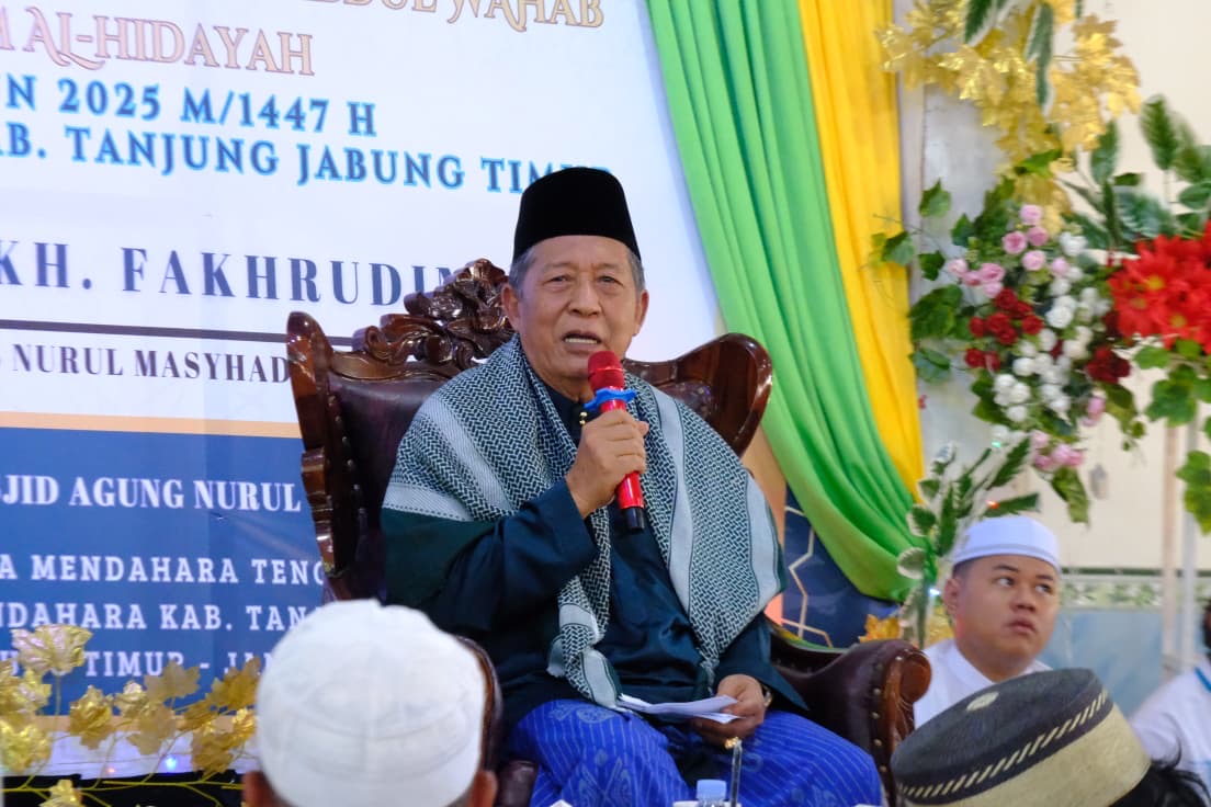 Wakil Gubernur Jambi Abdullah Sani, menghadiri dan juga sekaligus menjadi penceramah dalam kegiatan Tabligh Akbar dalam rangka peringatan Haul Syekh Abdul Qodir Al-Jailani, Syekh Nawawi Barjan, Syekh Muhammad Ali Bin Syekh Abdul Wahab serta Milad Ke-28 Majelis Taklim Al-Hidayah yang dilaksanakan di Masjid Agung Nurul Hidayah, Desa Mendahara Tengah, Kecamatan Mendahara, Kabupaten Tanjung Jabung Timur, Kamis (16/10/2025).