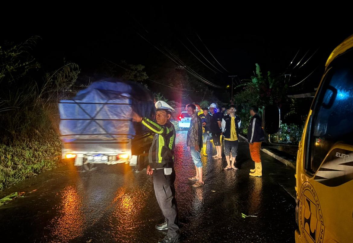 Kerinci – Tanah longsor terjadi di jalan lintas Kerinci–Bangko, tepatnya di Desa Muara Emat, Kecamatan Batang Merangin, Kabupaten Kerinci, pada Selasa malam (21/10/2025) sekitar pukul 21.00 WIB. Longsor tersebut menutupi badan jalan dan sempat mengakibatkan arus lalu lintas terganggu.