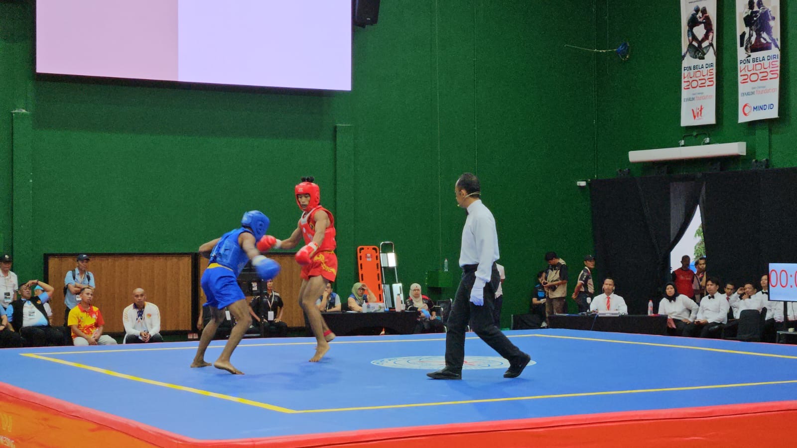 Lima atlet wushu Jambi nomor sanda atau tarung berhasil menang atas lawannya dan berhak melaju kebabak selanjutnya pada PON Bela Diri 2025, Kudus, Jawa Tengah.