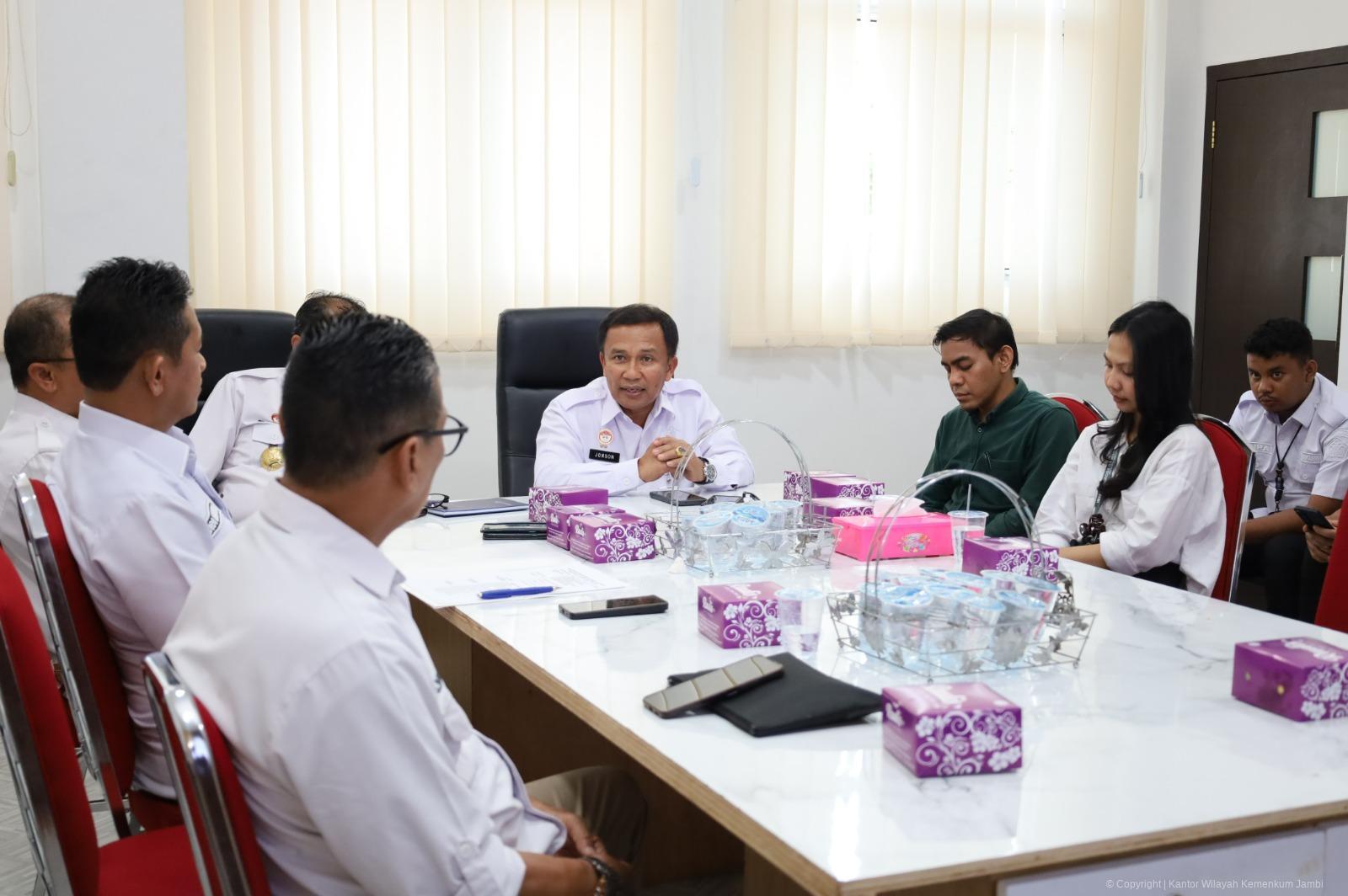 Kegiatan ini disambut langsung oleh Kepala Kantor Wilayah Kemenkum Jambi, Jonson Siagian, S.H., M.H., didampingi oleh Kepala Bagian Tata Usaha dan Umum, Ermasdon, serta tim PPID Kanwil Kemenkum Jambi.