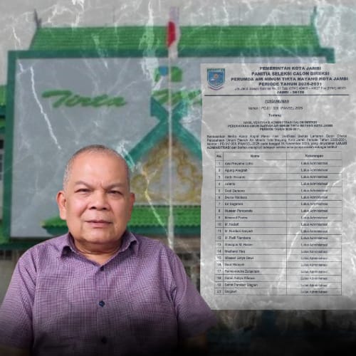 Panitia Seleksi umumkan 20 nama calon Direksi Perumda Tirta Mayang Jambi lolos administrasi. Tokoh masyarakat peringatkan keras potensi "direksi titipan" dan praktik KKN yang bisa perburuk layanan air bersih. Simak daftar lengkap dan kritiknya di sini.