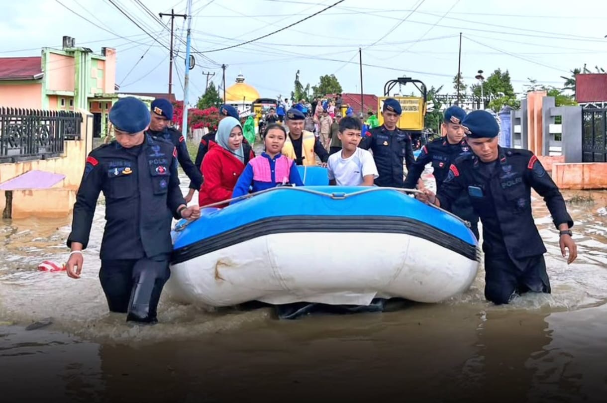 Menggunakan perahu karet dan perlengkapan SAR lengkap, personel Brimob melakukan penyisiran serta membantu warga yang kesulitan melintas akibat tingginya genangan air. Evakuasi dilakukan secara terukur dan humanis, mengutamakan keselamatan kelompok rentan seperti anak-anak, perempuan, dan lansia ke titik yang lebih aman.
