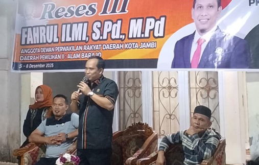 Jambi - Reses Anggota DPRD Kota Jambi Komisi IV, Fahrul Ilmi, S.Pd., M.Pd, di kawasan Alam Barajo, berlangsung berbeda dari biasanya. Tak ada suasana kaku nan formal, pertemuan di Daerah Pemilihan (Dapil) II ini justru berubah menjadi ruang diskusi hangat penuh gagasan kaum muda.