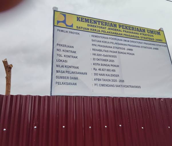 Sungai Penuh - Awan mendung menyelimuti pelaksanaan proyek strategis nasional pembangunan Pasar Rakyat Sungai Penuh (Pasar Beringin Jaya). Proyek yang didanai APBN dengan nilai pagu Rp 55 miliar di bawah Satker Prasarana Strategis Kementerian PU RI ini dikabarkan makin runyam.