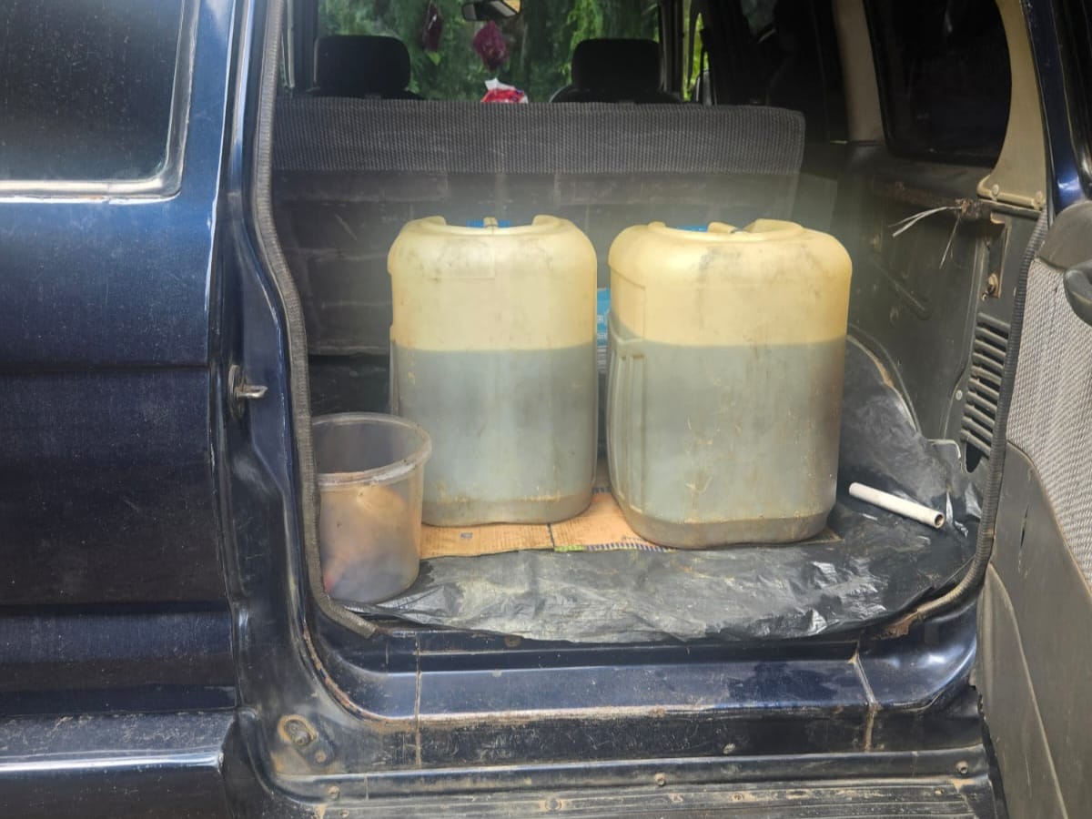 Selain itu, diamankan dua jeriken putih berisi solar masing-masing sekitar 29 liter atau total kurang lebih 58 liter, satu corong, satu selang warna hijau sepanjang sekitar 150 sentimeter, serta satu toples plastik bening.