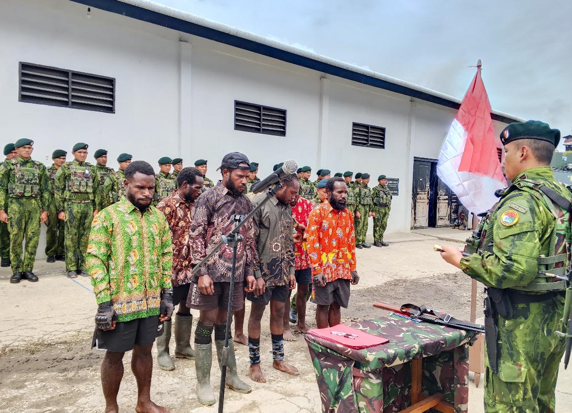 Tujuh mantan anggota TPNPB-OPM yang pernah terlibat pembakaran SMA di Distrik Sinak dan penyanderaan pegawai Puskesmas Sinak Barat pada tahun 2024, secara resmi menyatakan Ikrar Setia kembali kepada pangkuan NKRI dalam Acara Ikrar NKRI yang dilaksankan di Kotis Sinak Satgas Yonif 142/KJ.
