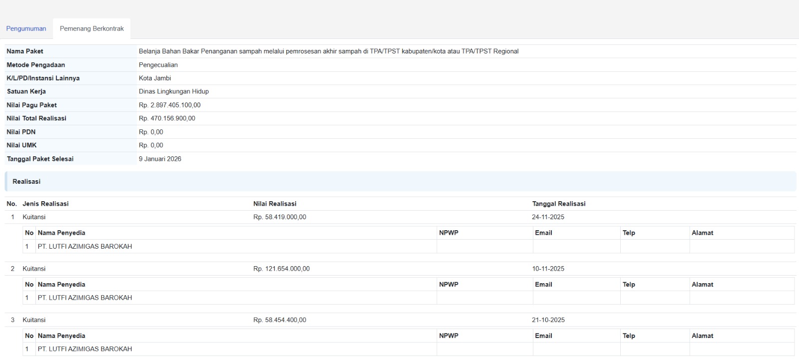 Dengan skema Pengadaan Dikecualikan ini, penunjukan PT Lutfi Azimigas Barokah sebagai penyedia tunggal BBM sampah dianggap sah secara regulasi, selama harga yang dibayarkan sesuai dengan tarif resmi BBM yang berlaku dan volume yang disalurkan dapat dipertanggungjawabkan.