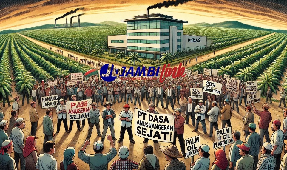 Tanjung Jabung Barat – Konflik berkepanjangan terkait lahan perkebunan kelapa sawit antara PT Dasa Anugerah Sejati (PT DAS) dan kelompok tani dari 9 desa di Kecamatan Merlung, Kecamatan Tungkal Ulu, dan Kecamatan Batang Asam, Kabupaten Tanjung Jabung Barat, hingga kini belum menemukan titik terang. Meskipun sudah berlangsung selama 27 tahun sejak PT DAS mulai mengelola lahan, tuntutan masyarakat atas realisasi kemitraan 20% lahan perkebunan masih belum dipenuhi.
