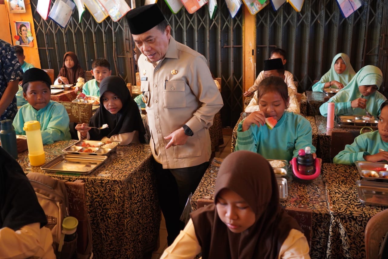 Bangko - Gubernur Jambi Dr. H. Al Haris, S.Sos, MH menegaskan pentingnya kedisiplinan Satuan Pelayanan Pemenuhan Gizi (SPPG) dan melakukan pengawasan yang ketat terhadap kualitas bahan baku serta pemasok bahan baku dan kebersihan dalam menjaga kualitas makanan sampai proses produksi program Makan Bergizi Gratis (MBG). Hal tersebut disampaikannya saat meninjau dapur persiapan Program Makan Bergizi Gratis (MBG) dan meninjau SD Negeri No.60/IV Bangko, SMK Negeri 1 Merangin, serta Koperasi Merah Putih di Jalan Lintas Sumatera Km.4 Dusun Bangko, Kabupaten Merangin Jum’at (03/10/2025).