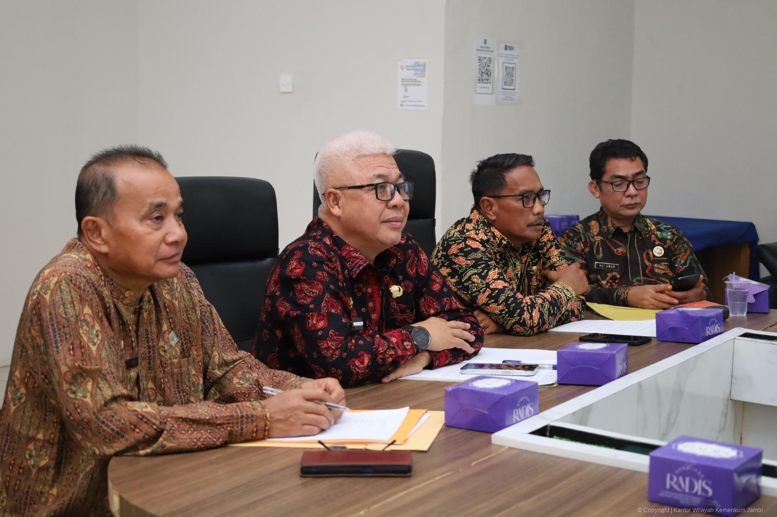 Kantor Wilayah Kementerian Hukum (Kemenkum) Jambi melalui Divisi Peraturan Perundang-undangan dan Pembinaan Hukum (P3H) melaksanakan Rapat Pengharmonisasian Rancangan Peraturan Daerah (Ranperda) Kabupaten Sarolangun tentang Pembentukan Desa Sido Mukti Kecamatan Singkut.